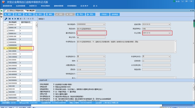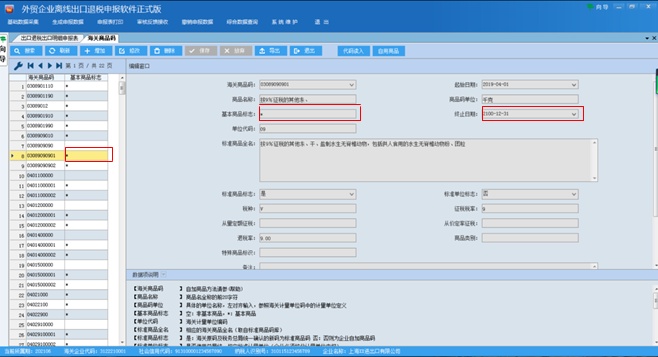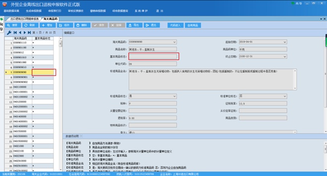 2.录入的是非基本商品码。基本商品码标志可在“系统维护”—“代码维护”—“海关商品码”中进行查询,带有*号标志的即为基本商品码。反之,则属于非基本商品码,不能直接用于申报出口退税。