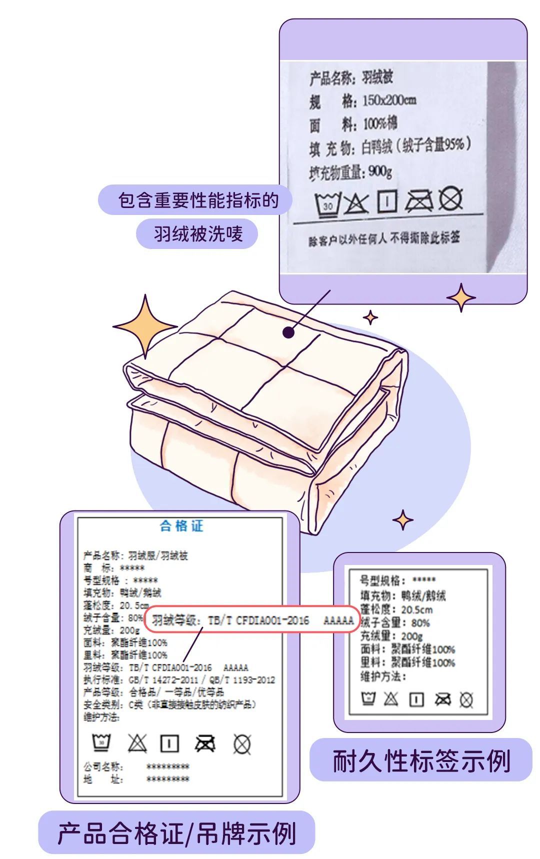 图为TB/T CFDIA 001-2016《羽绒分级标准》中规定的羽绒产品使用说明