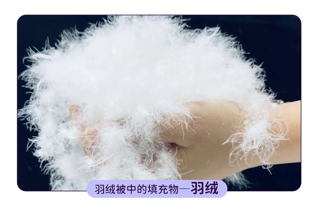 但是,绝对意义上绒子含量为100%的羽绒被也是不存在的,因为羽绒中必然有毛片、羽丝、杂质成分存在。