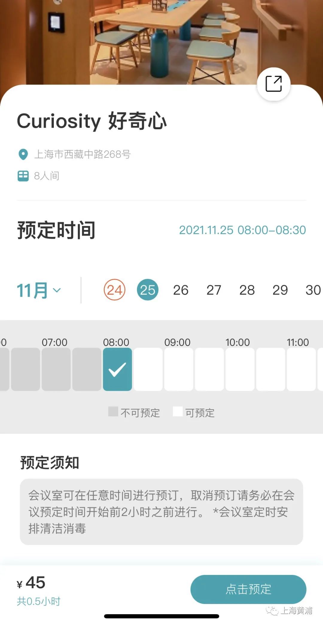 据介绍,共享会议室内,大量使用了微孔板和隔音棉,可以降低外部噪音,保证空间的私密性。每间会议室采用独立的照明和通风系统,可以单独调节亮度与温度,照顾不同顾客的个性化体验需求。价格方面,由于目前处于半价优惠期,所以小会议室的价格为12.5元/半小时,中会议室的价格为45元/半小时。