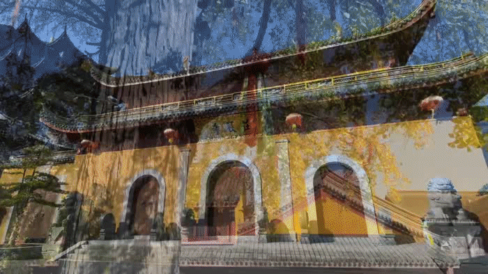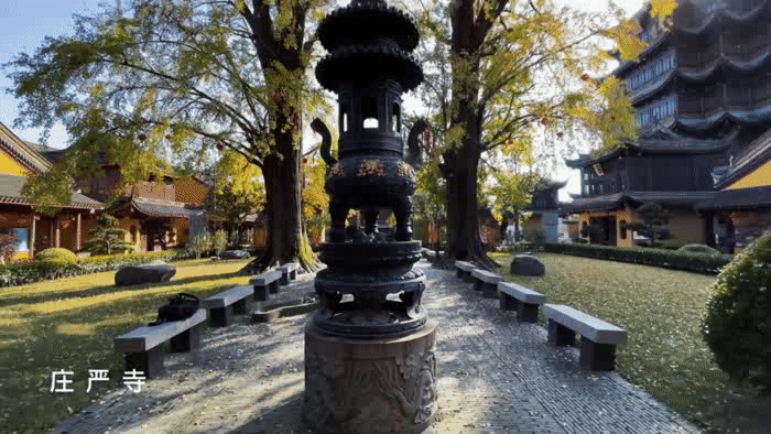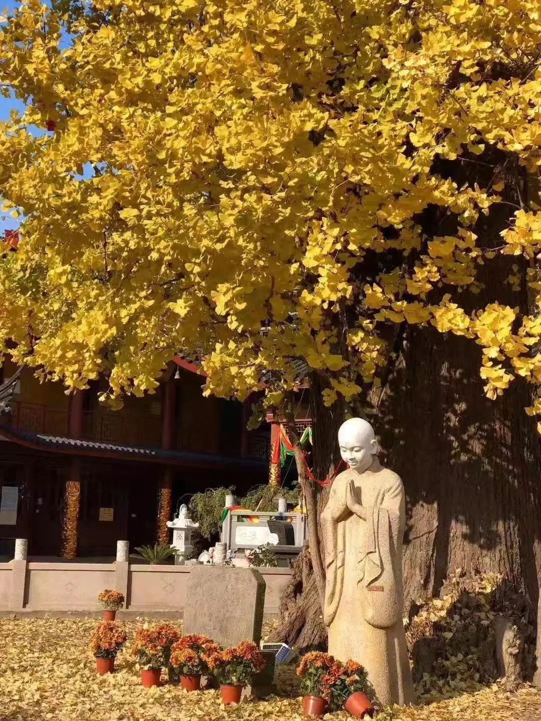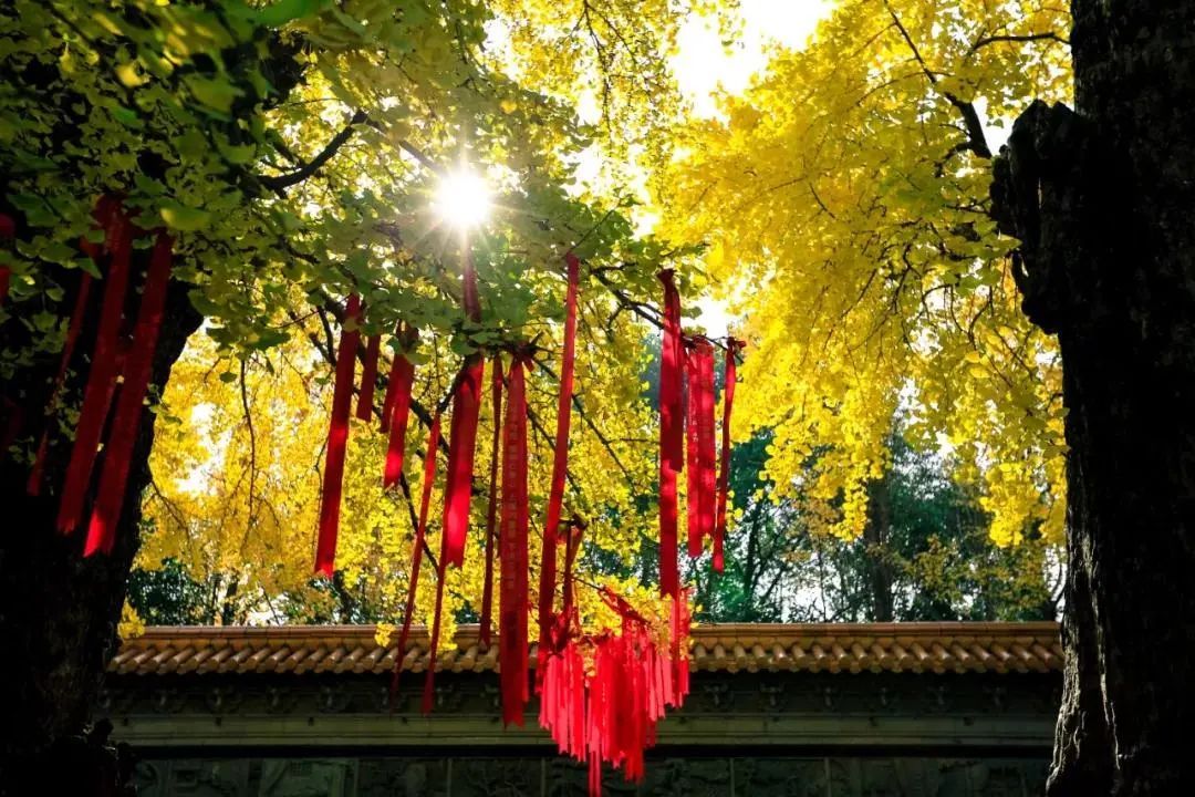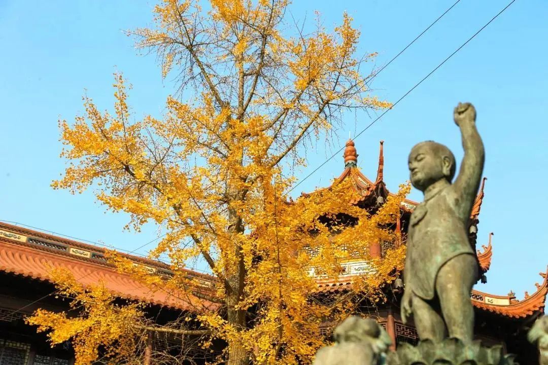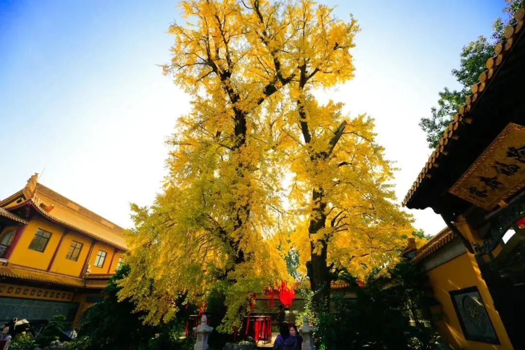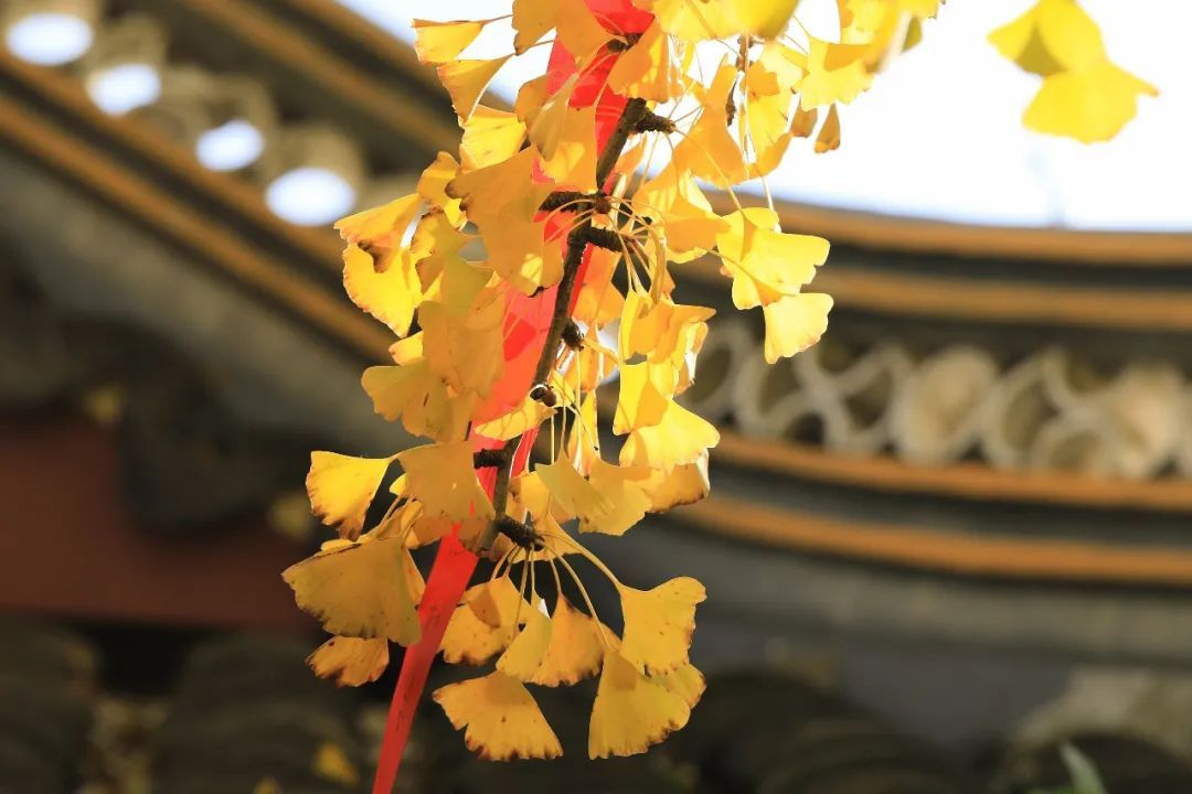 梵宇庄严的古刹配上缤纷的银杏