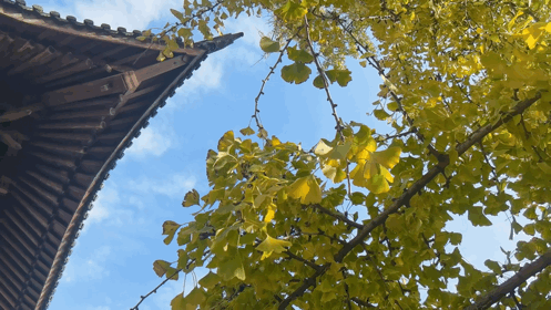 每逢深秋,满树的黄叶与古老的寺院交相映衬