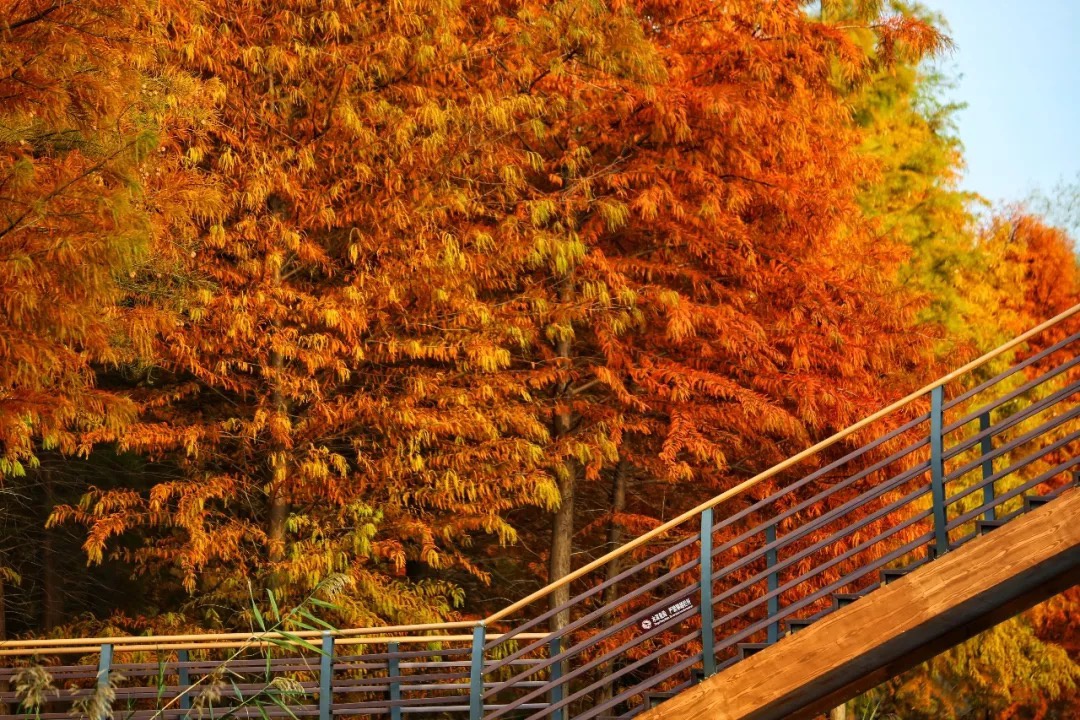 鸬鹚们来崇明越冬时,也是西沙湿地内水森林秋景最美的时节。乘船徜徉在西沙湿地2000多米长的水森林景观河道上,伴随着光线变化,岸边的池杉、落羽杉、柳树呈现出明黄、橙红、浅绿等不同的色彩,宛如打翻了大自然五彩缤纷的调色盘。