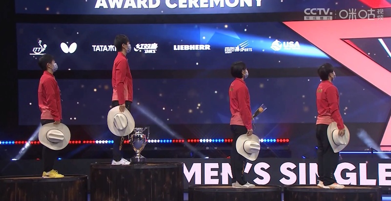 由此,中国女乒包揽女单四强,并实现在世乒赛女单项目上的14连冠。在随后进行的颁奖仪式上,四面五星红旗同时升起。网友:这就是国乒的排面,骄傲!