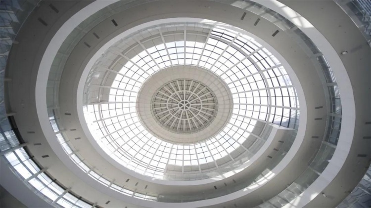 记者了解到,李政道研究所实验楼总建筑面积达56000平方米,以玻璃球体相连南北两幢实验楼,它以宇宙纯粹、秩序的特征为设计理念,通透、明亮,酝酿着科学与艺术的碰撞火花。李政道研究所介绍,这一球体共享空间在确保空间明亮、开放的同时,还采取了局部遮阳、换气窗等节能环保设计,球体的部分冬季供暖将来自科学计算中心回收的余热。