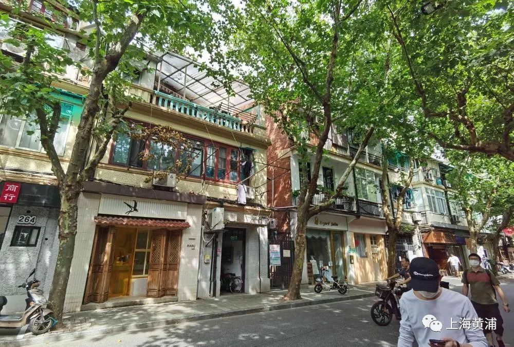 沿着新天地地铁口前行,梧桐掩映下的淡水路充满风情,拉毛的浅黄色外墙在树叶的光斑中映射出骑手、步行者、汽车往来的剪影。