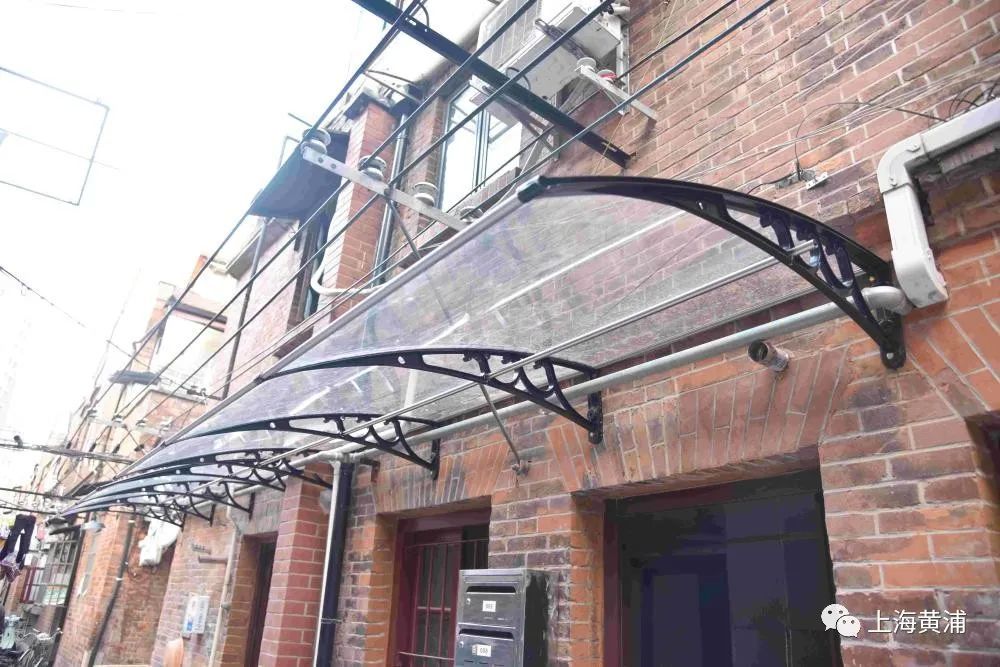 还比如家家户户门口的雨棚,显得乱七八糟。有几户的雨棚遮住整条弄堂的横截面,遮挡有限的阳光;有几户顶上没有雨棚;还有几户雨棚脏污破烂却还半挂在那里,存有安全隐患。