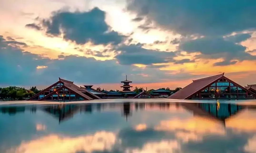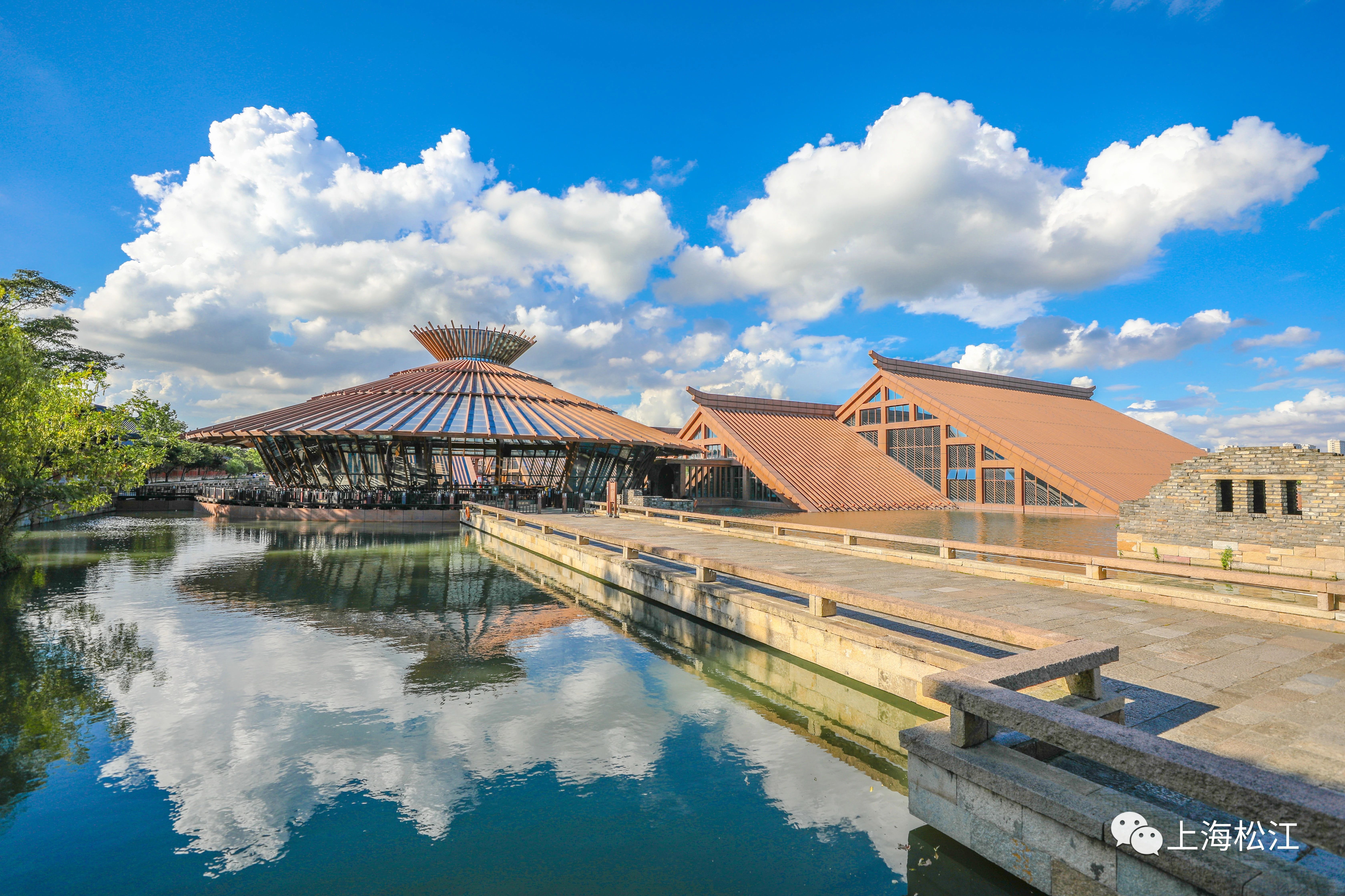 平静的水面犹如明镜,将广富林文化遗址中的古雅建筑倒映进了另一个世界。