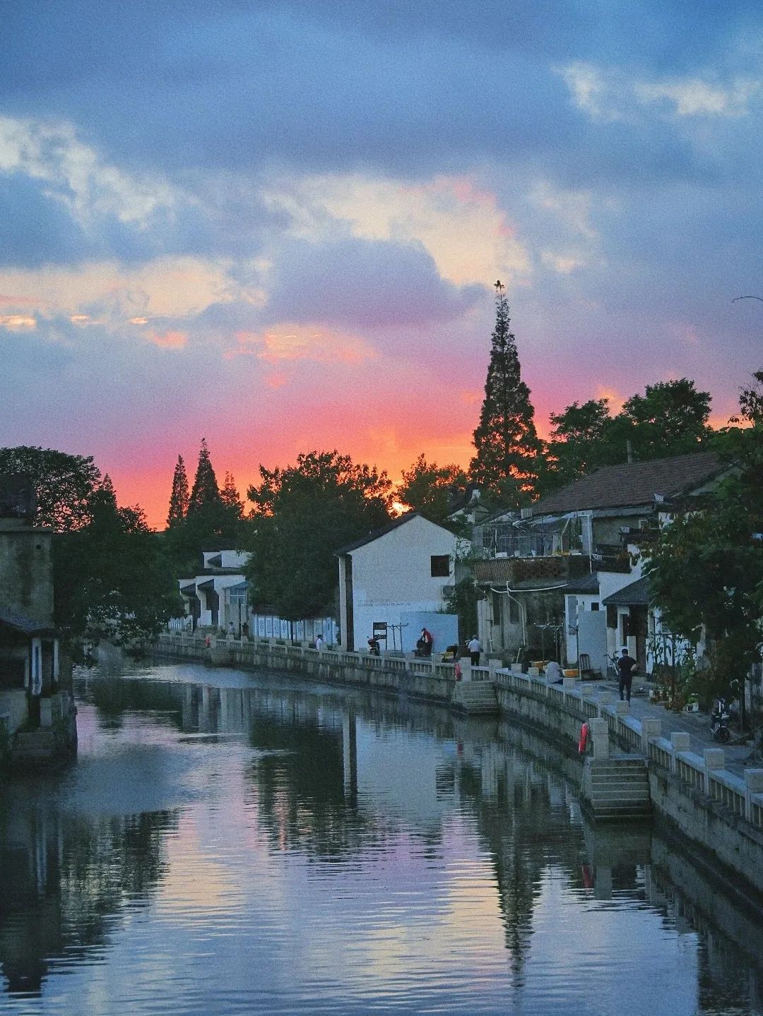 落日时分,晚霞也入了这幅水中画卷,令人心神驰往。