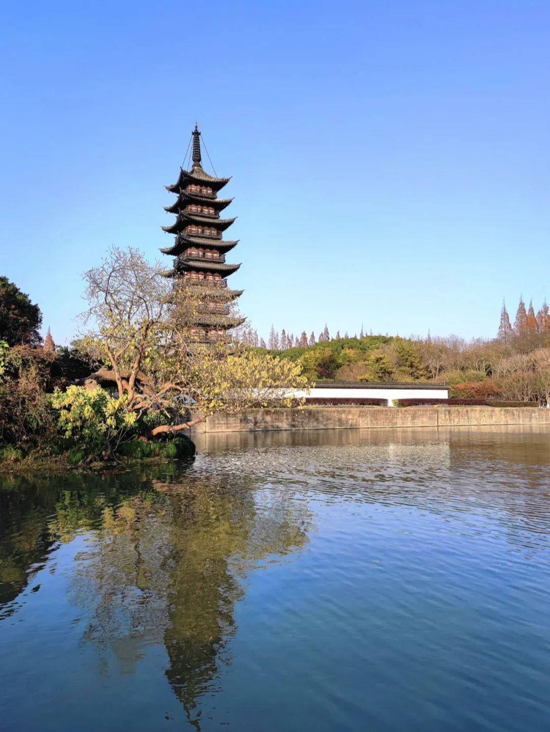 走进方塔园,除了一目了然的方塔,水中的这座古塔同样值得欣赏。
