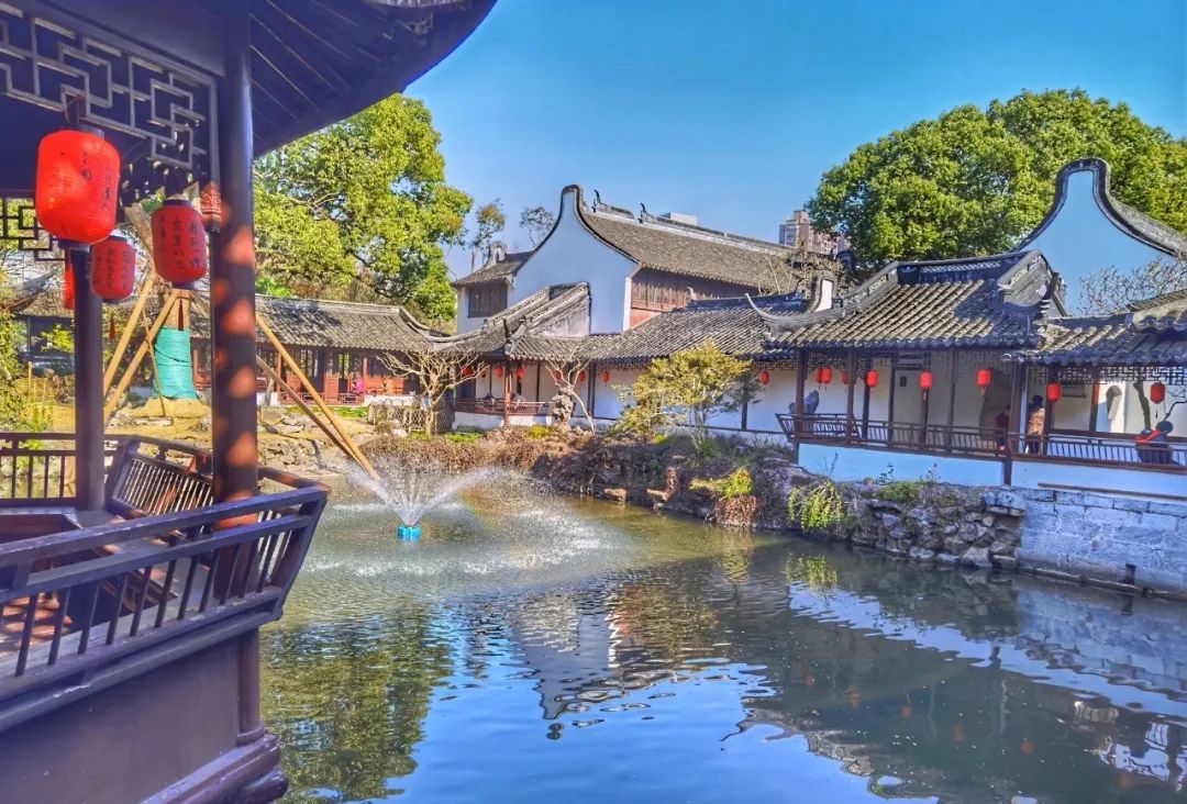 来到醉白池,在亭台楼阁间欣赏时,不妨也低头看下水面的风景吧。