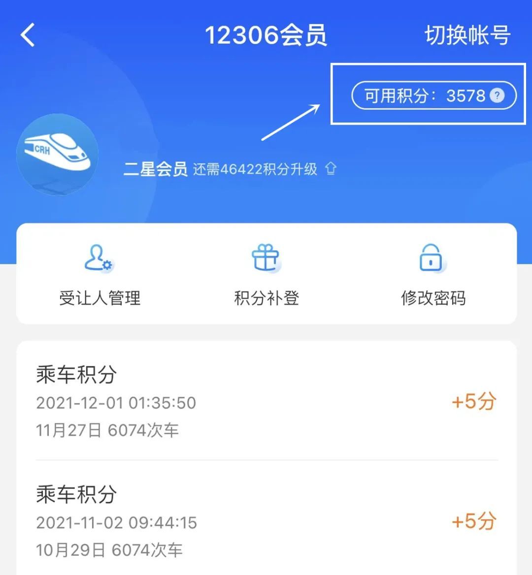 ②积分在会员实际乘车到站后5日内自动进入本人账户,不能转让;