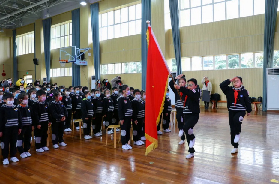 “会学习,守规范,雏鹰争章放光芒!”“星星火炬是方向,团结一心共成长!”整齐划一的嘹亮口号,表达着小同学们内心的激动与自豪。