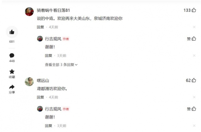 孙老师说,这次是他第二次来山东,虽然这些都是小事,但正是小事才更能见人品、见心意。帖子发出后,许多山东网友在评论区留言,邀请孙老师来自己的家乡玩。