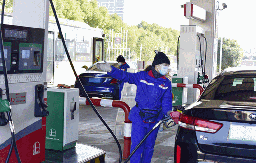 在中心城区的北蔡加油站,一线党员梁晓岚在加油站入口处指挥,确保进站加油车辆有序排队,她还与等候时间较长的司机朋友聊天,舒解他们焦急的心情,帮助在易捷便利店内的客户提篮备货,繁忙的加油现场其乐融融。