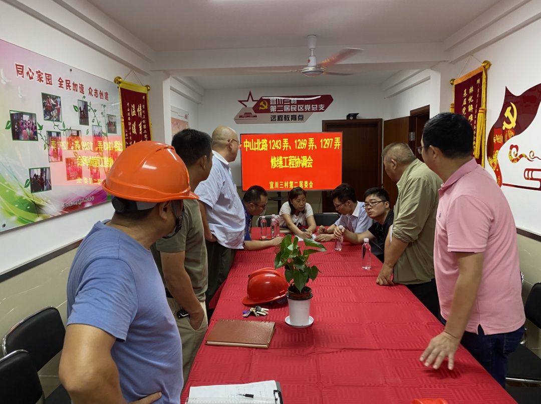 宜川三村第二居民区党总支依托“红色议事厅”阵地,以居民区党员志愿者为骨干成立专项协调小组,对施工中存在的问题进行汇总,通过“三位一体”机制与施工方定期进行磋商与协调,最大限度减少对居民日常生活的影响,保障居民的权益。