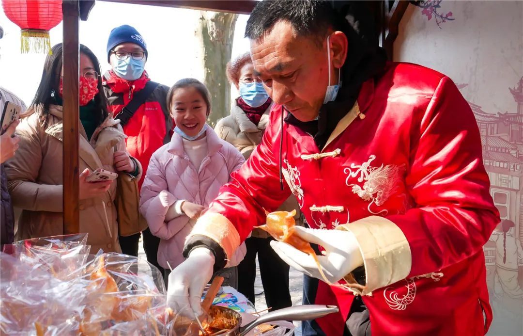 “你看得出他在做什么吗?”“好像是个兔子!”园内的国风集市也十分热闹,游客们在这里逛市集、品美食,更有民间手工艺绝活——吹糖人可以体验。“这个地方非常有年味,很惬意。”游客柏先生说。