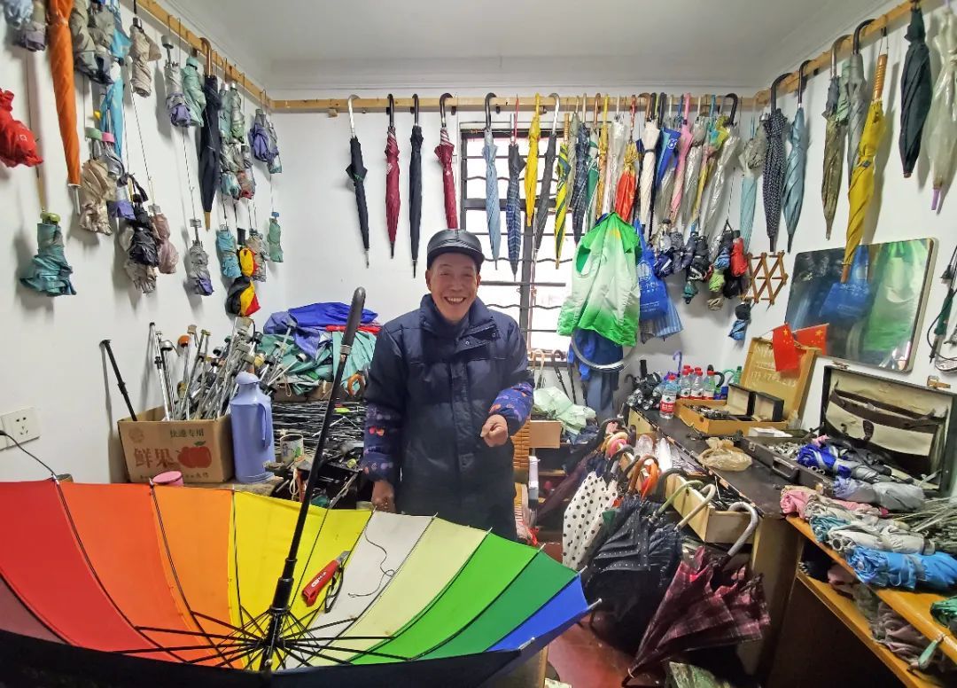 而这些伞的主人,就是古稀之年的张永兴,从2015年至今,他已经免费修伞7年多,修好的雨伞1.8万把。这些雨伞不仅为无数人挡风遮雨,也把老人的爱心带到大街小巷。