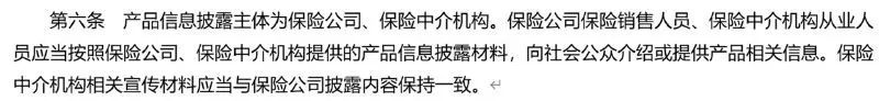 具体要求上,《办法》明确,保险产品的信息披露材料应当由保险公司总公司统一负责管理。产品信息披露主体为保险公司、保险中介机构。保险中介机构相关宣传材料应当与保险公司披露内容保持一致。