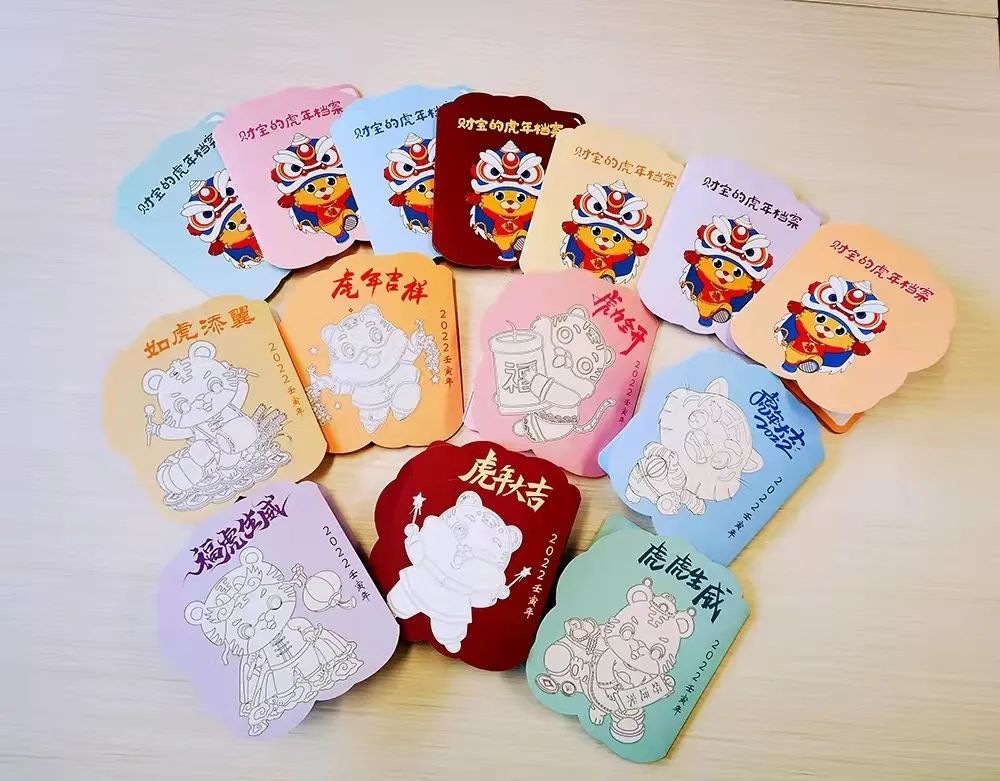 进入校园,孩子们通过盲盒抽取的方式获得各不相同的小老虎。随后,大家可以通过涂色对老虎做个性化装扮,再参与量身高、比手掌、记鞋码、写希望、赠祝福等活动,把点滴的成长数据记录在《财宝虎年档案》中,争取在新学期“虎力全开”,勇攀新高。