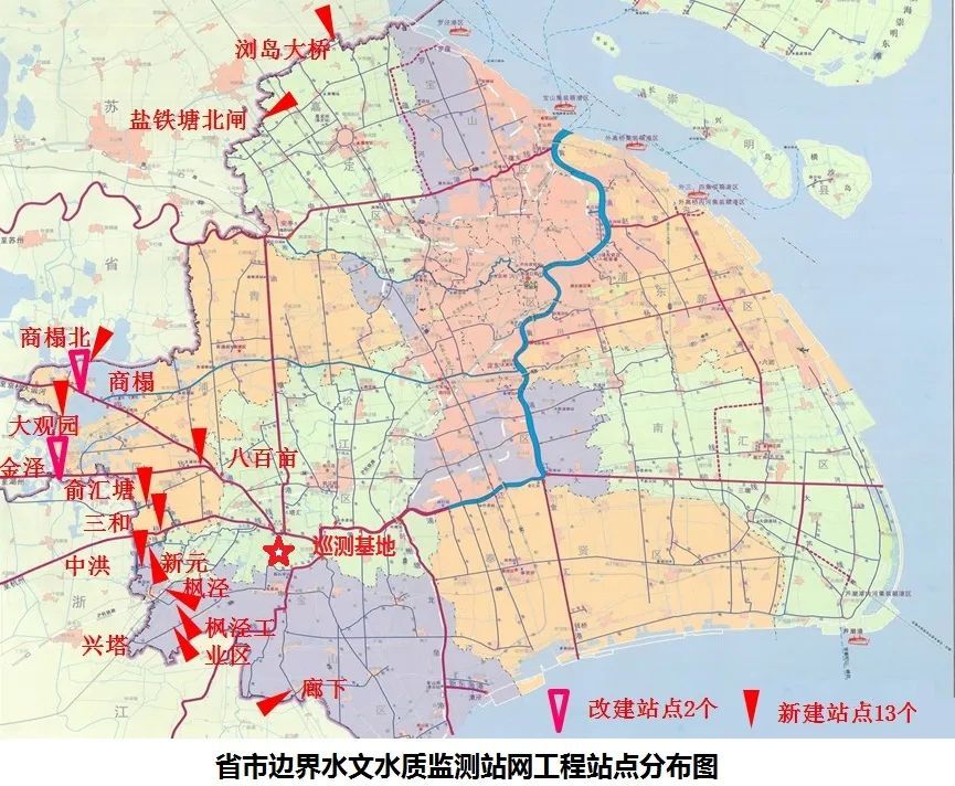 水文监测站网建设是提升水安全保障能力和水资源科学管理能力的基础支撑。省市边界水文水质监测站网建设工程作为上海市重大工程,通过新建廊下、兴塔等13处水文测站,改建金泽、商榻等3处测站,新建省界松江水文巡测基地1处,配备85吨巡测船1艘(沪水文102号),实现了上海市与江苏省、浙江省边界河流水量、水质实时监测的全覆盖,进一步完善了本市“三线一面”(长江口及杭州湾沿岸、黄浦江干流及两翼支流、省市边界和黄浦江上游,中心城区和水利控制片)水文监测站网布局和监测功能。
