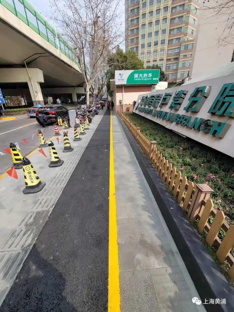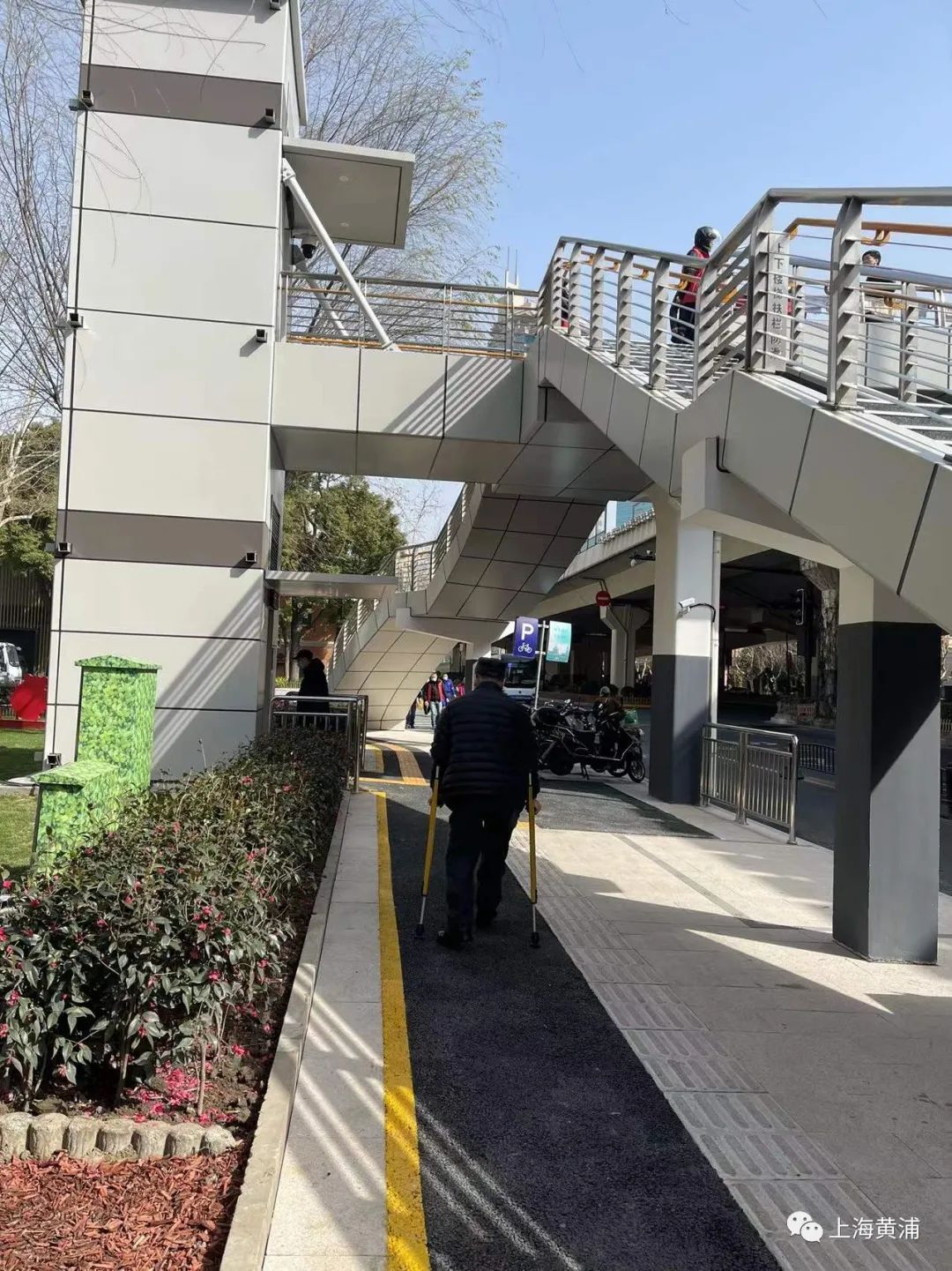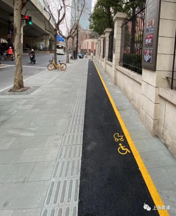 让张师傅开心的不仅是天桥加梯了,天桥附近的无障碍设施也全部人性化地更新了。与天桥相邻的医院、电梯出入口道路,都采用了稳定性、抗裂性更好的沥青材料铺设友好步道,轮椅车出行更平稳、顺畅了。