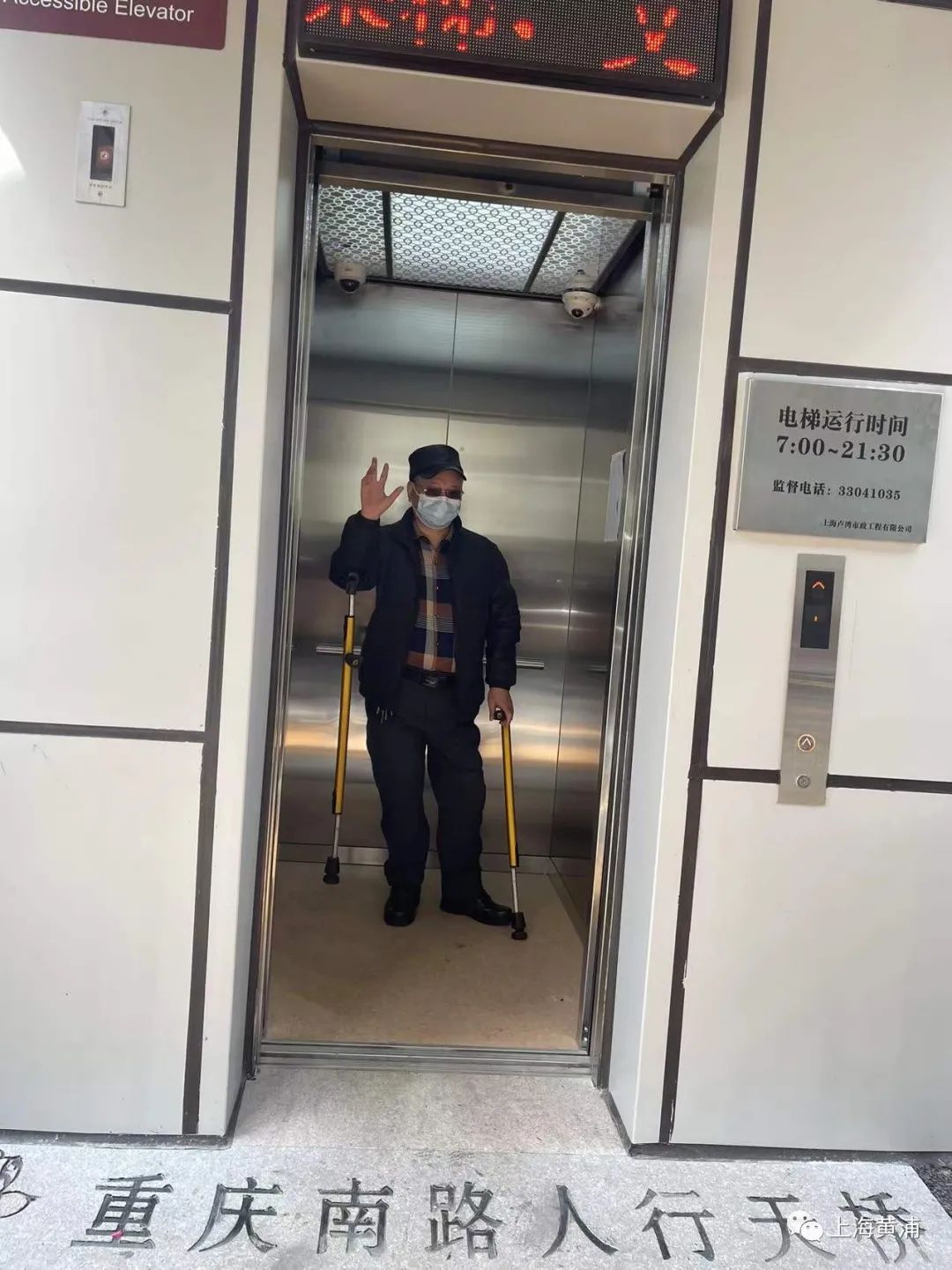 使用的人群中,拄着拐杖的张师傅,看着特别开心。原来,他就住在重庆南路附近,看着天桥加梯从开工到建设完成,2个多月的时间,张师傅是一个重要“见证人”。