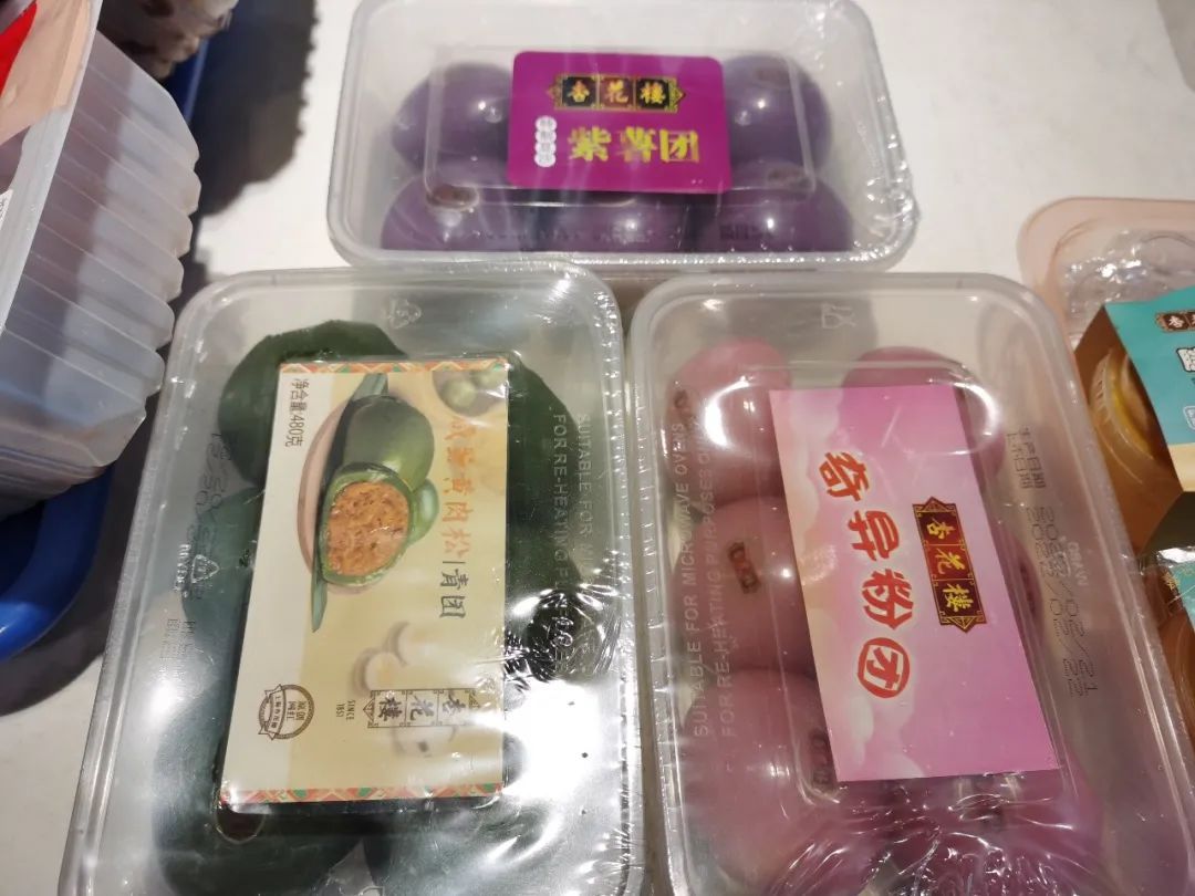 而在长宁路上的杏花楼,各式各样的青团摆在了店内最显眼的位置,口味也推陈出新。除了有“网红鼻祖”豆沙、肉松青团,同步上市的奇异粉团(草莓味)、紫薯团也成为店内新宠。