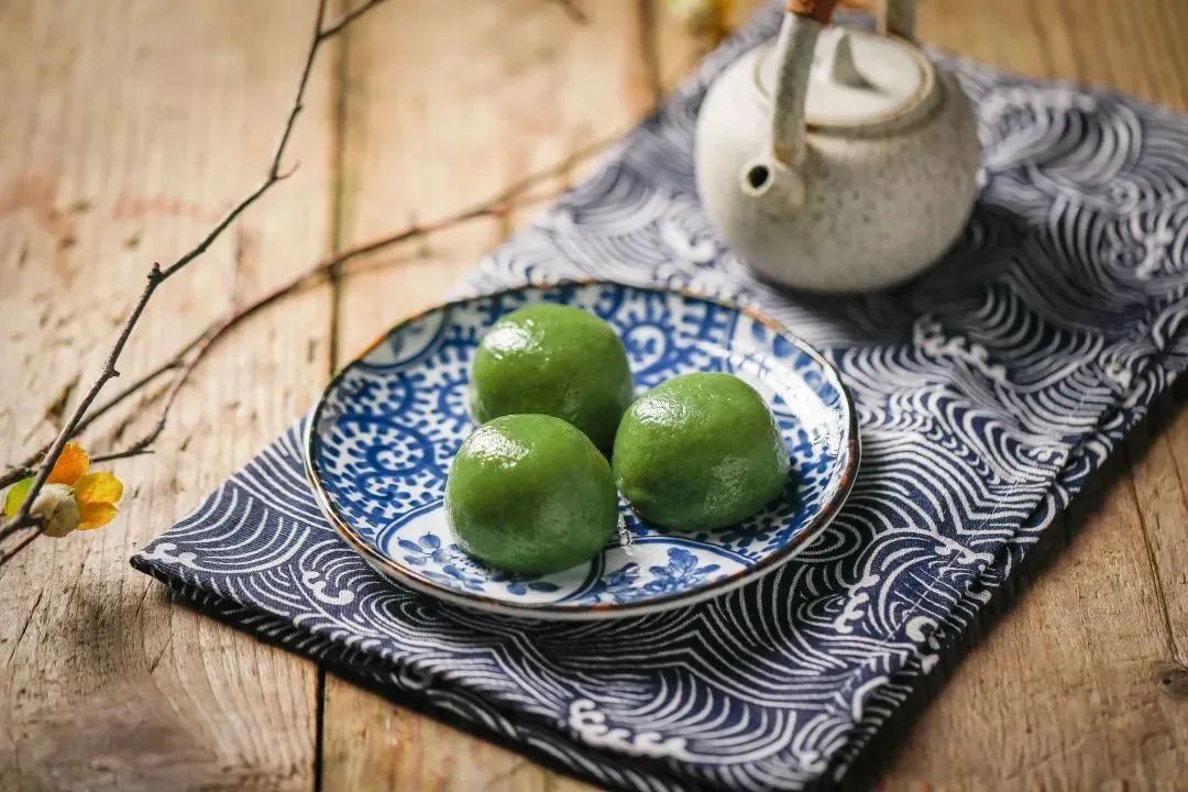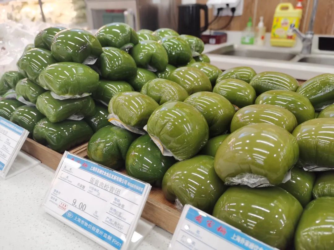 “宁宁”在位于玉屏南路九华邻居里的乔家栅看到,一个个青如碧玉的青团整齐摆放着。店员介绍,青团作为江南一带的特色小食,原来主要集中在清明前后销售,而今年自元宵节过后,店内的青团就已上市。