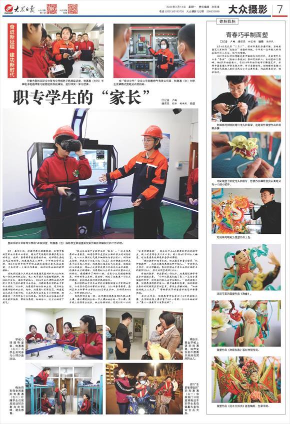 “班主任相当于全班学生的‘家长’。”这是刘惠惠的切身感受,她曾在寒冬凌晨把生病的学生送到急诊室,也一次次强压火气慢声细语地与学生谈心。刚当班主任时,班里有个女生小文(化名)因为调座位的事在本子上写骂人的话,刘惠惠知道后生气又委屈,但经过耐心沟通后,得知小文其实是因为对机电专业不满意,想换专业才闹情绪。刘惠惠耐心分析专业的优势和小文的特点,慢慢解开了她的心结。后来小文成绩逐渐提高,升学时考上本科。离校时,她给了刘惠惠一个大大的拥抱,直到现在她们俩还保持联系。
