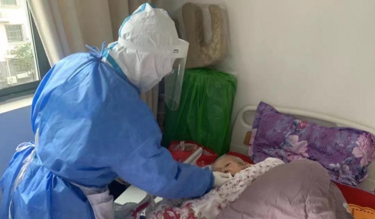 “老姆妈,我们是来帮你做核酸检测的。”突击队中还有核酸检测流动队,专门为特殊人群提供上门核酸检测服务。为了确保实现应检尽检的目标,老港镇党委、政府组织核酸检测流动队服务于各村居,为行动不便的居家老人及残障人士进行上门检测服务,保证核酸检测的全覆盖。