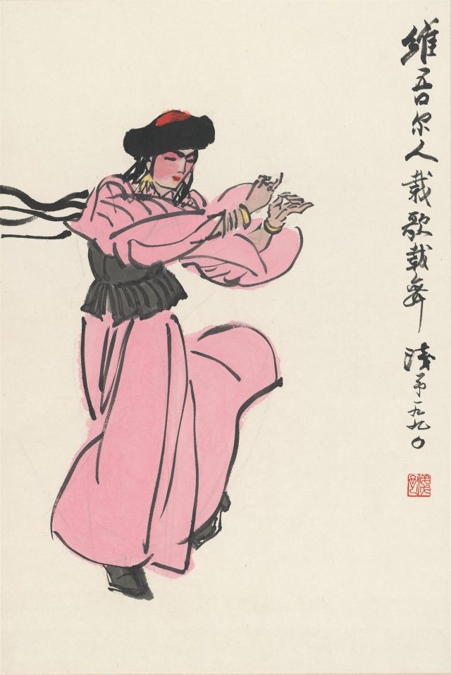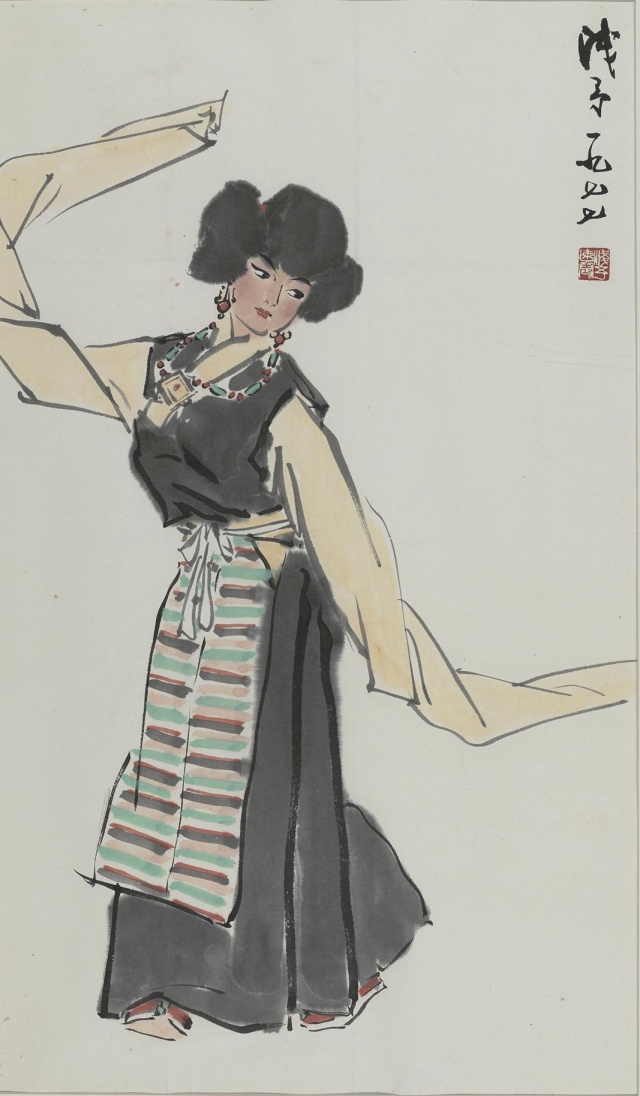 今天带来的三幅馆藏也是叶浅予舞蹈人物的典型之作,舞姿造型优美,服装独特准确,为观众们打开了感知民族民间舞的一扇窗。