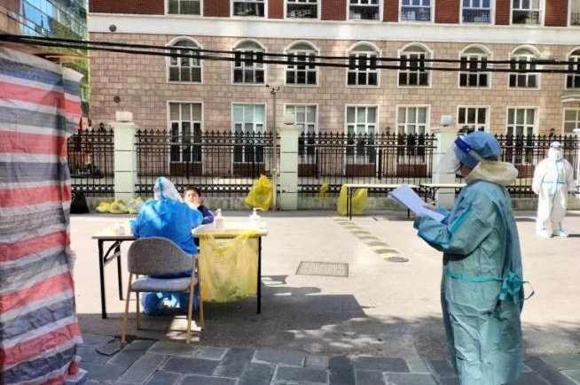 学会劳动法专业委员会秘书长、华东师范大学经济与管理学部教师邱婕协助小区核酸检测,做好现场引导。