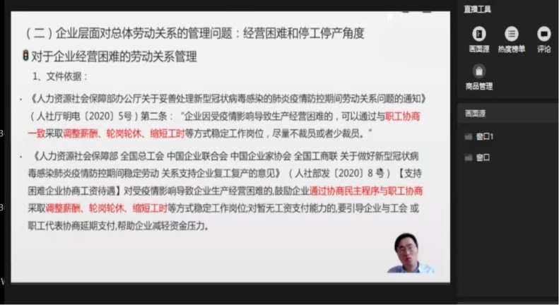 ▲学会劳动法专业委员会会员、学会培训专家支持团成员潘铮律师作《新冠肺炎疫情劳动关系管理策略分析》线上公益讲座直播,听众踊跃互动,反映良好。