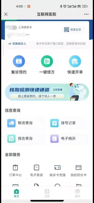 广大市民可以用自己的微信账号关注“上海瑞金医院”公众号,访问瑞金医院互联网医院,为本人60周岁(含)以上的父母和18周岁(不含)以下的孩子在线绑定医保卡,在完成互联网医院在线复诊,医生开具处方后,可代老人或孩子在线完成医保结算,在线获得医疗电子票据。使用该功能前,请在“随申办”APP的“随申码”功能中,为老人、孩子绑定“亲属随申码”。