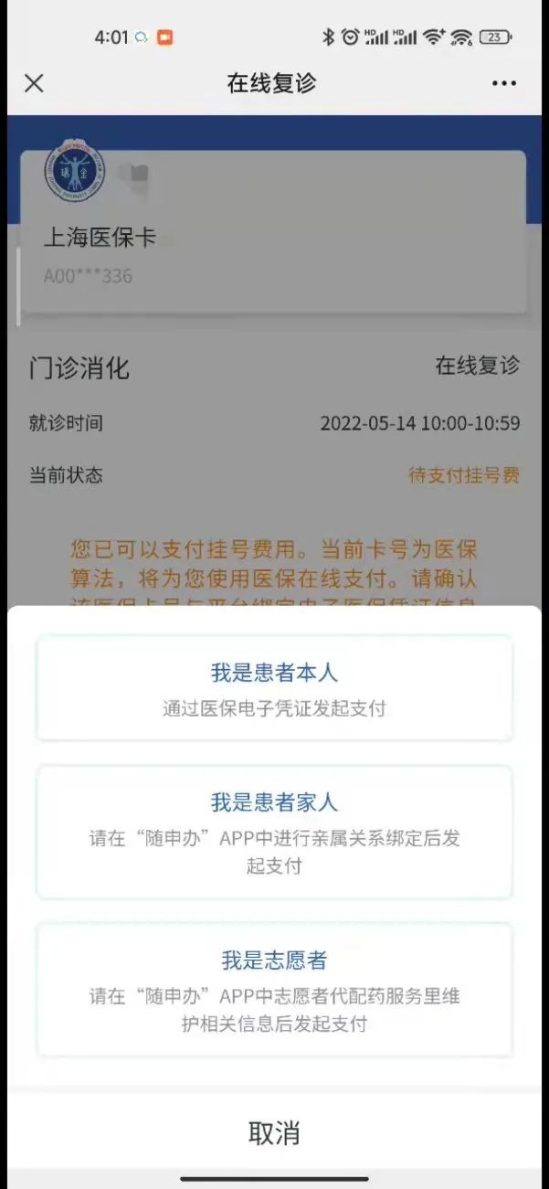 2、如就诊患者为18岁以下儿童、青少年将直接引导进入“随申办”小程序完成挂号费支付;