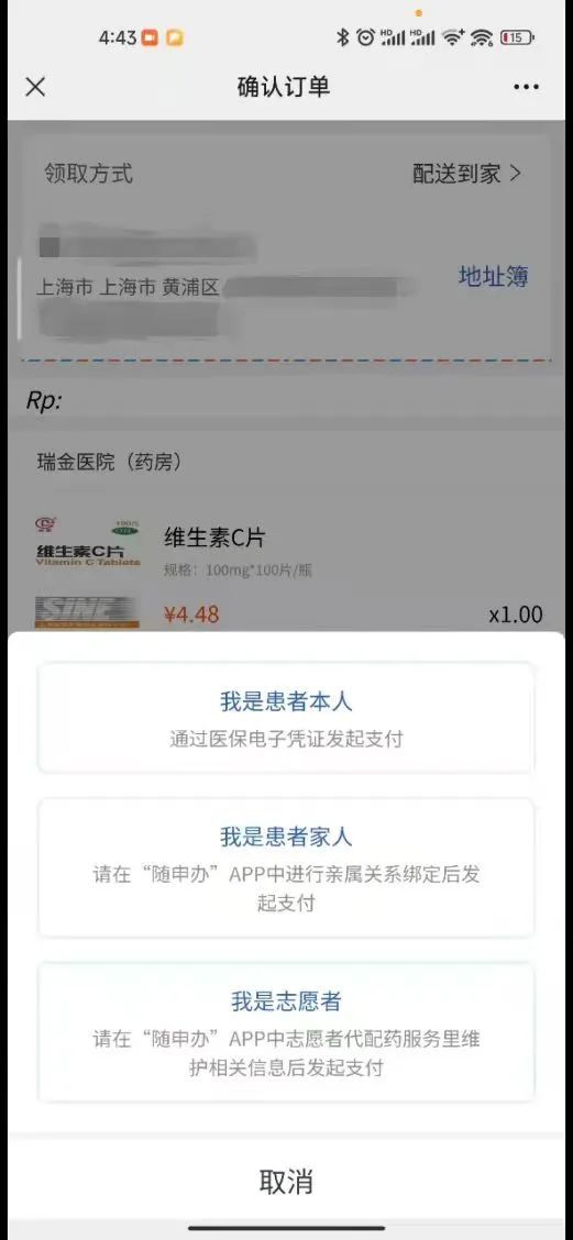 4、与第二步支付挂号费类似,通过引导进入“随申办”小程序完成支付,并等待药品配送到家。