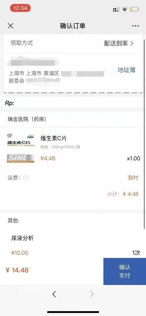 3、点击“支付”按钮,进入支付确认页。录入配送地址信息,点击“确认”支付;