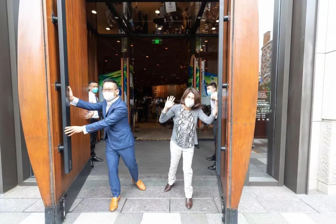 9点一到,星巴克中国首席执行官蔡德粦和上海烘焙工坊总经理蓝若薇共同开启上海烘焙工坊主门,欢迎第一批顾客和“星粉”。