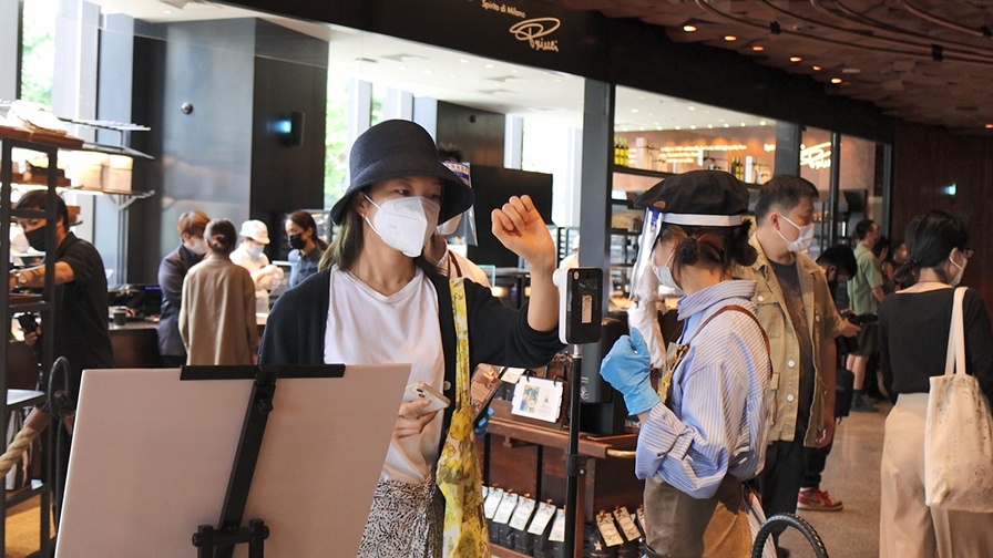 值班店长毛丹丹介绍说,现场防疫措施严格按照政府相关要求,工作人员每天持核酸阴性报告上岗,全场佩戴口罩,每半小时手部消毒一次,每小时进行全场所公共区域消毒,每四小时清洁一次地面,接待顾客的工作人员还需要佩戴面屏等。