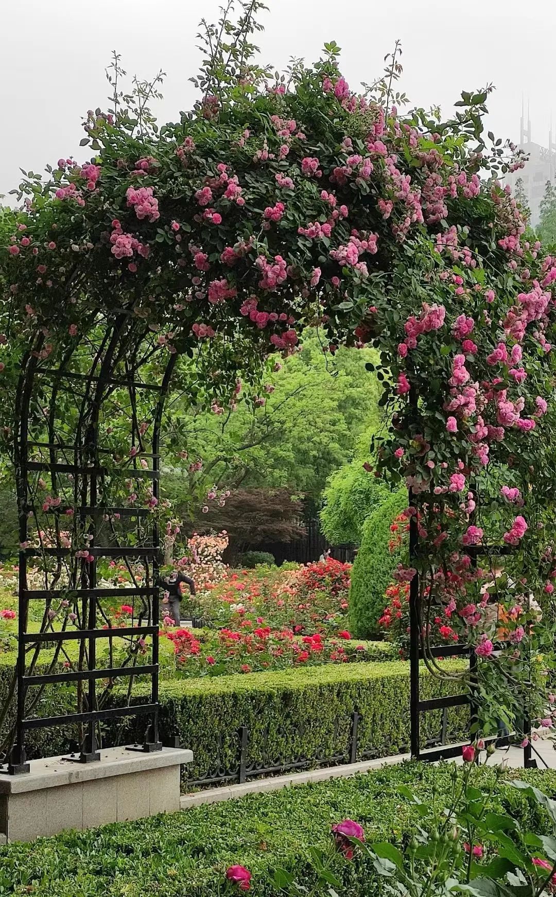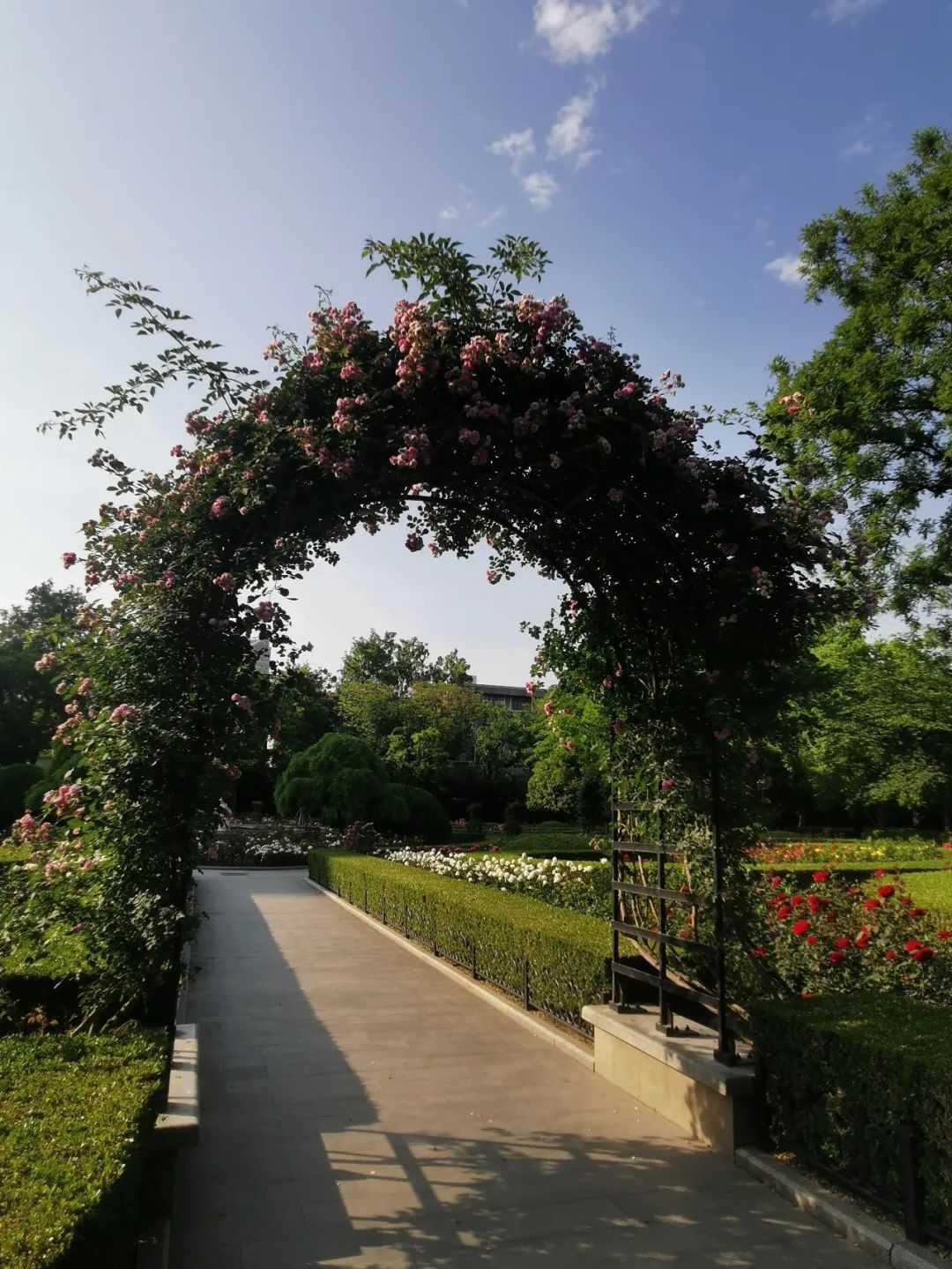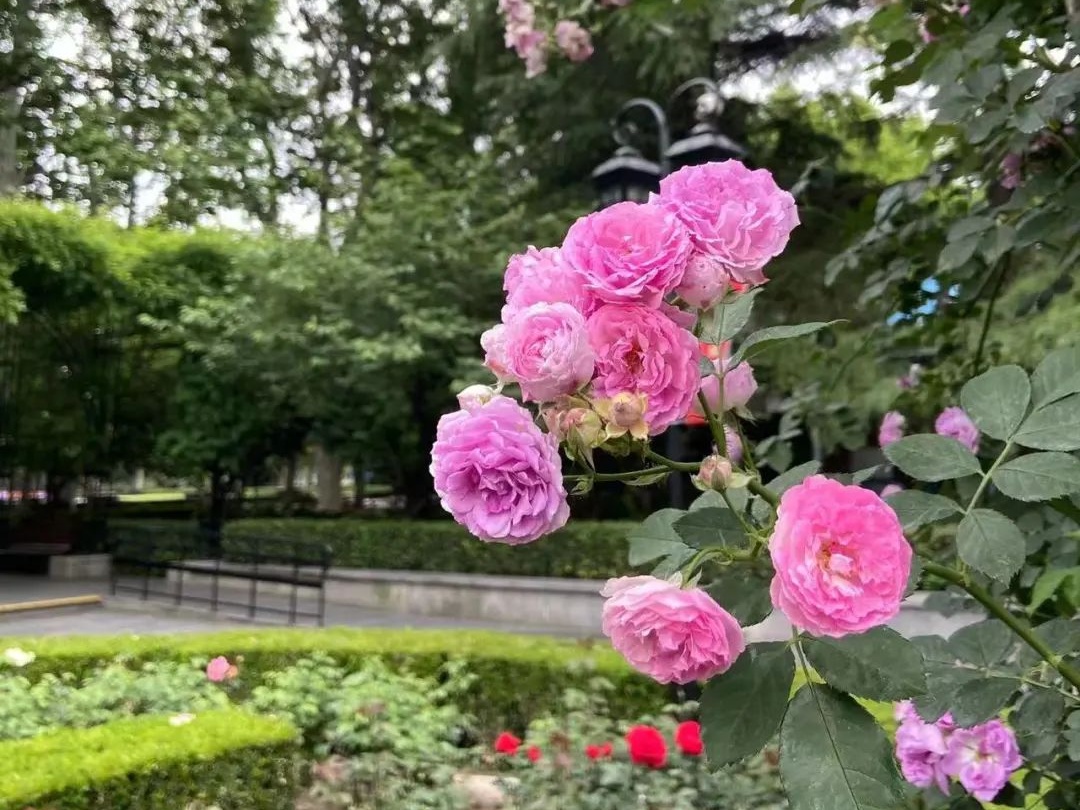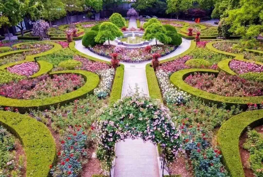 黄浦区法式古典风格的复兴公园,百花争艳,芬芳十里。其中最具特色的就是复兴公园西北角的“玫瑰园”,虽被称为玫瑰园,但种植的花卉多以灌木月季和藤本月季为主。