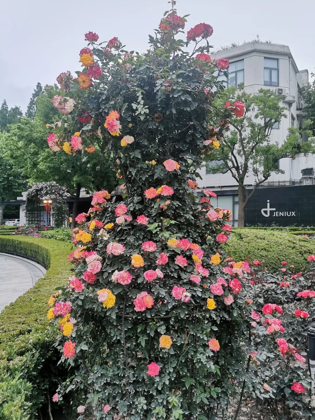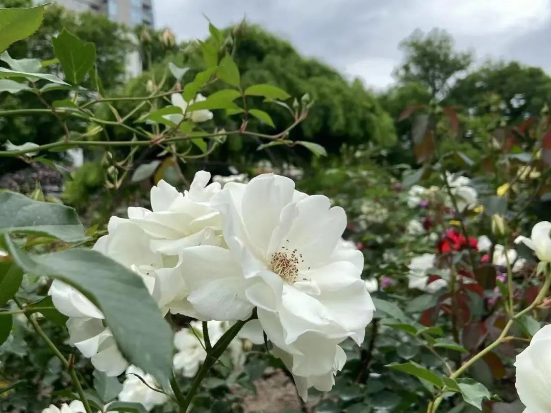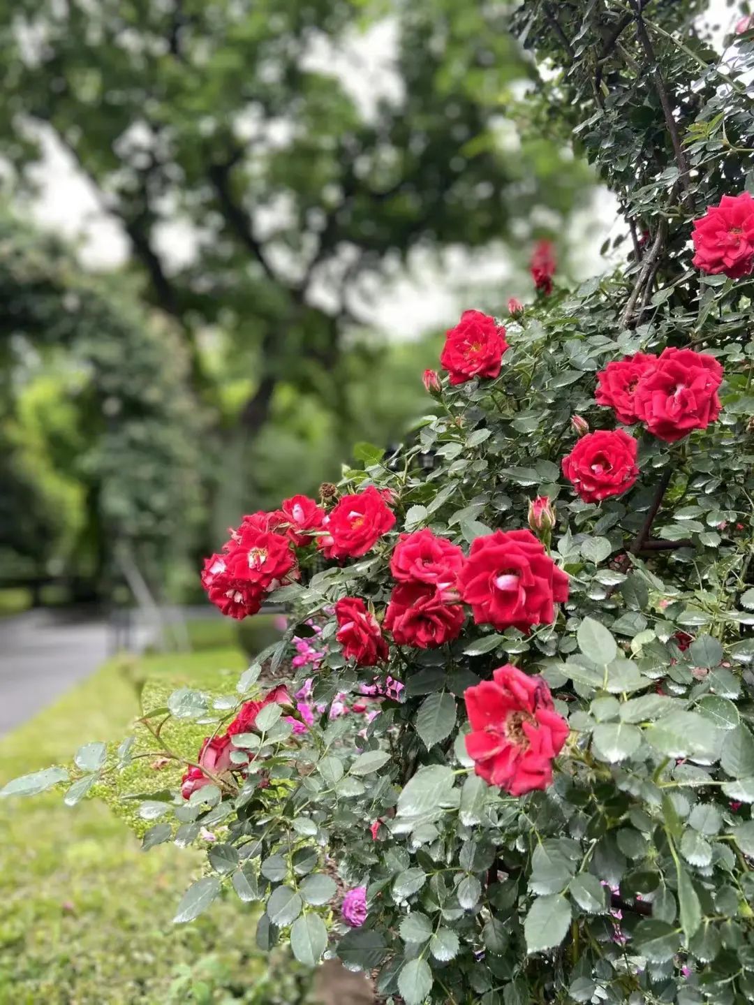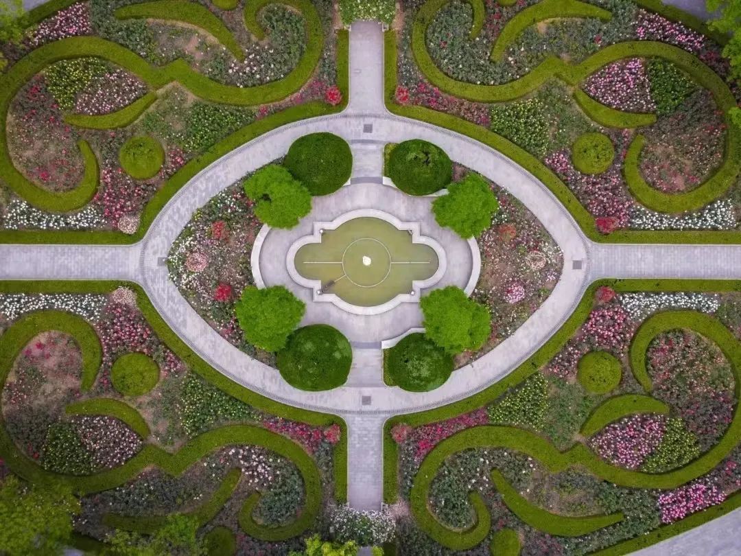 黄浦区法式古典风格的复兴公园,百花争艳,芬芳十里。其中最具特色的就是复兴公园西北角的“玫瑰园”,虽被称为玫瑰园,但种植的花卉多以灌木月季和藤本月季为主。