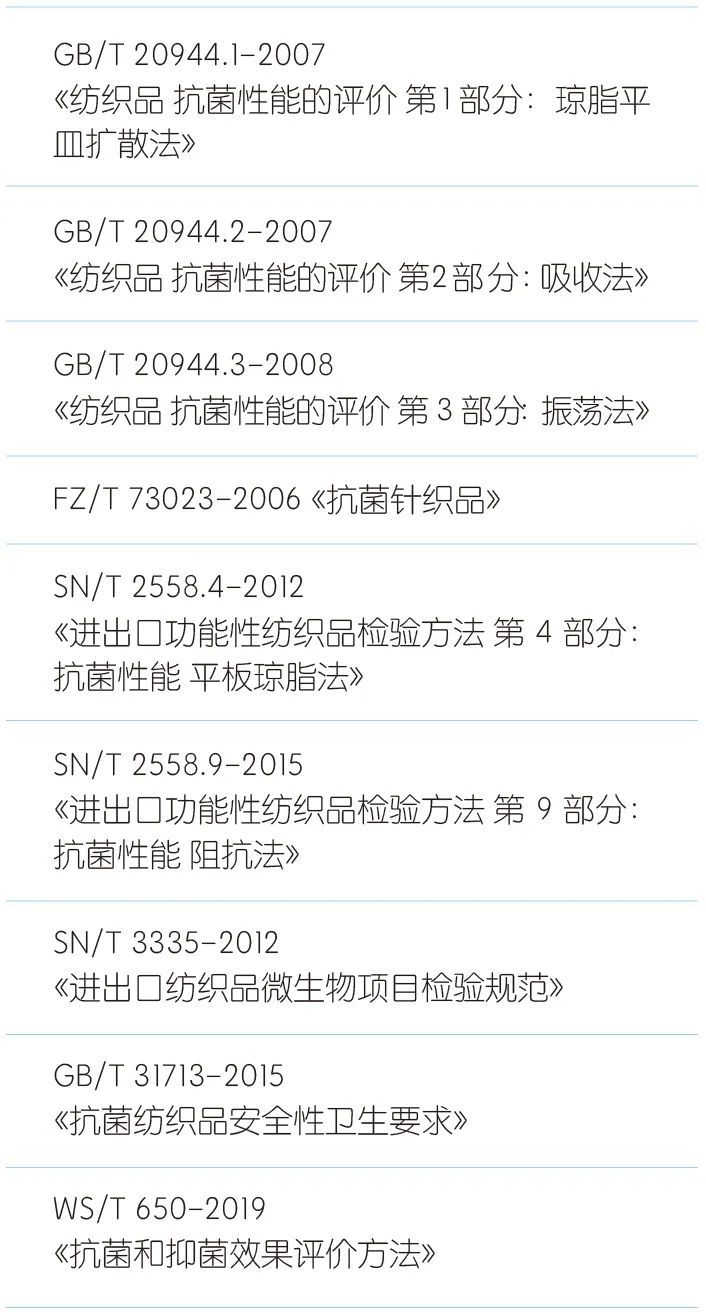 抗菌测试标准主要如下