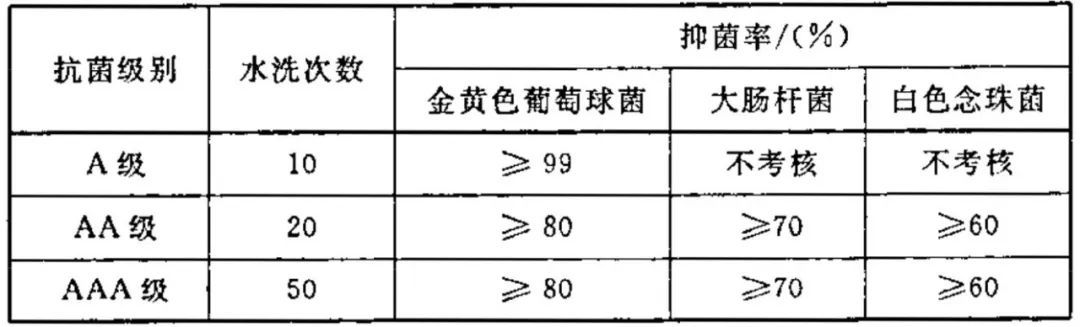依据标准,抗菌针织品按耐洗涤次数及考核菌种不同分为A级、AA级,AAA级三个抗菌级别,其中A级产品耐洗涤次数考核指标为10次、AA级产品耐洗涤次数考核指标为20次、AAA级产品耐洗涤次数考核指标50次。级别越高,质量越有保障。