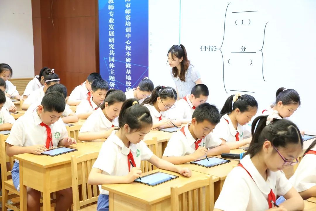 作为市数字教材实验校,宝虹小学结合课题深化应用,实现了数字教材、智能批阅、教学APP等平台融合,聚焦笔记功能,分析学习轨迹,形成了“课前自主学习、课中合作分享、课后诊断改进”的一体化教学模式。
