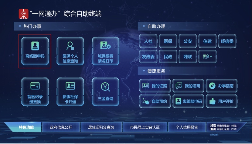 近期,中国银行、工商银行、农业银行、建设银行、交通银行总计1149个网点已开通“随申办离线码”申领、打印服务。不会线上操作领取的老年朋友们,去银行办事的时候,就能顺便打印离线码。此外,还可以前往社区事务受理服务中心,在“一网通办”的自助机上申领离线码。