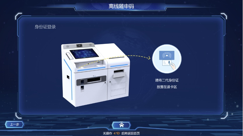 身份证登录:在身份证读卡区放置身份证,完成身份认证。