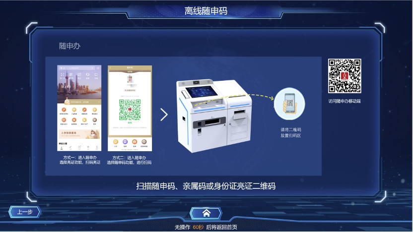 随申办、亲属码登录:在二维码扫码器处展示申领人“随申码”或“亲属码”,完成身份认证。