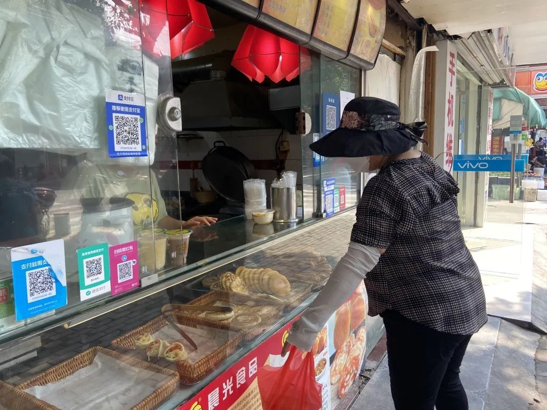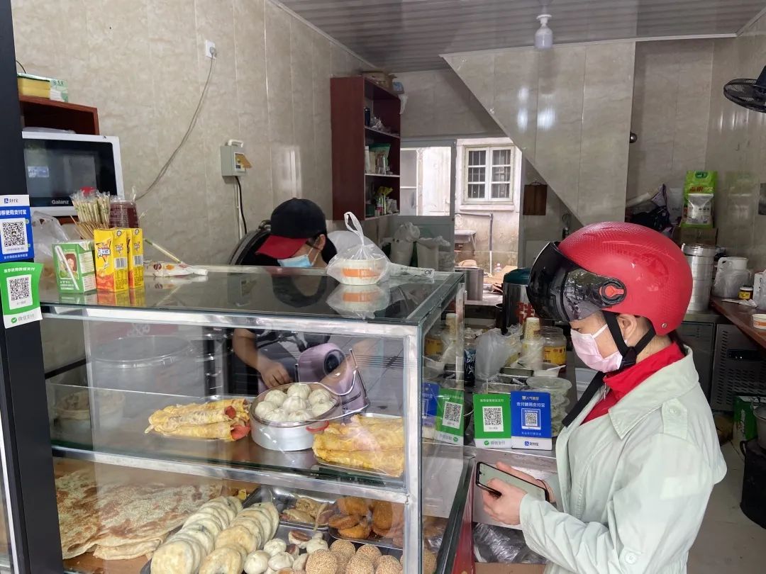 生活的美好滋味也许就是来上一口大饼、油条和豆浆的“黄金组合”,用一顿丰盛的早餐开启元气满满的一天 。在天一饼店、晨光烧饼等早餐店门前,小编看到一大早就陆续有市民前来购买,大家自觉排队。售卖窗口处摆放了烧饼、油条、蛋饼、豆腐花等早点,种类丰富,色香味俱全,让人欲罢不能。面对这些久违的食品,附近居民都发出由衷感叹:虽然不能堂食,打包带走也很开心。