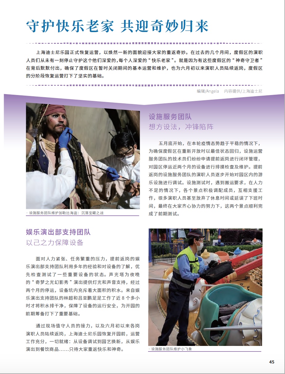和病毒的较量过程好比升级打怪,入园政策的日趋严密,游客信息的数据采集,场所设备的安全提示,景观环境的日常维护,无不在提醒人们,疫情常态化下的精细管理,核心依然是人。对游客来说,最重要的改变是:你不再是过客,而是主人,每一个人都要通过管理自身来实现群体的平安,快乐不仅是米奇的事,而是需要大家共同来维护的。